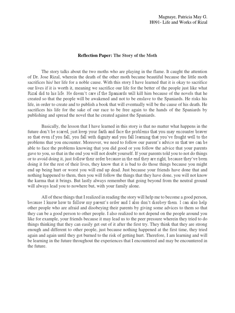 Reflection Paper Of Life And Works Of Rizal Pdf